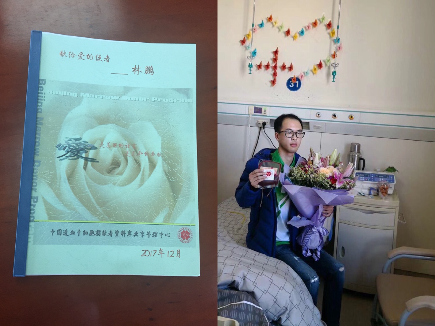 (图为小林所签订协议通知以及捐献结束后与其捐献的造血干细胞合影)