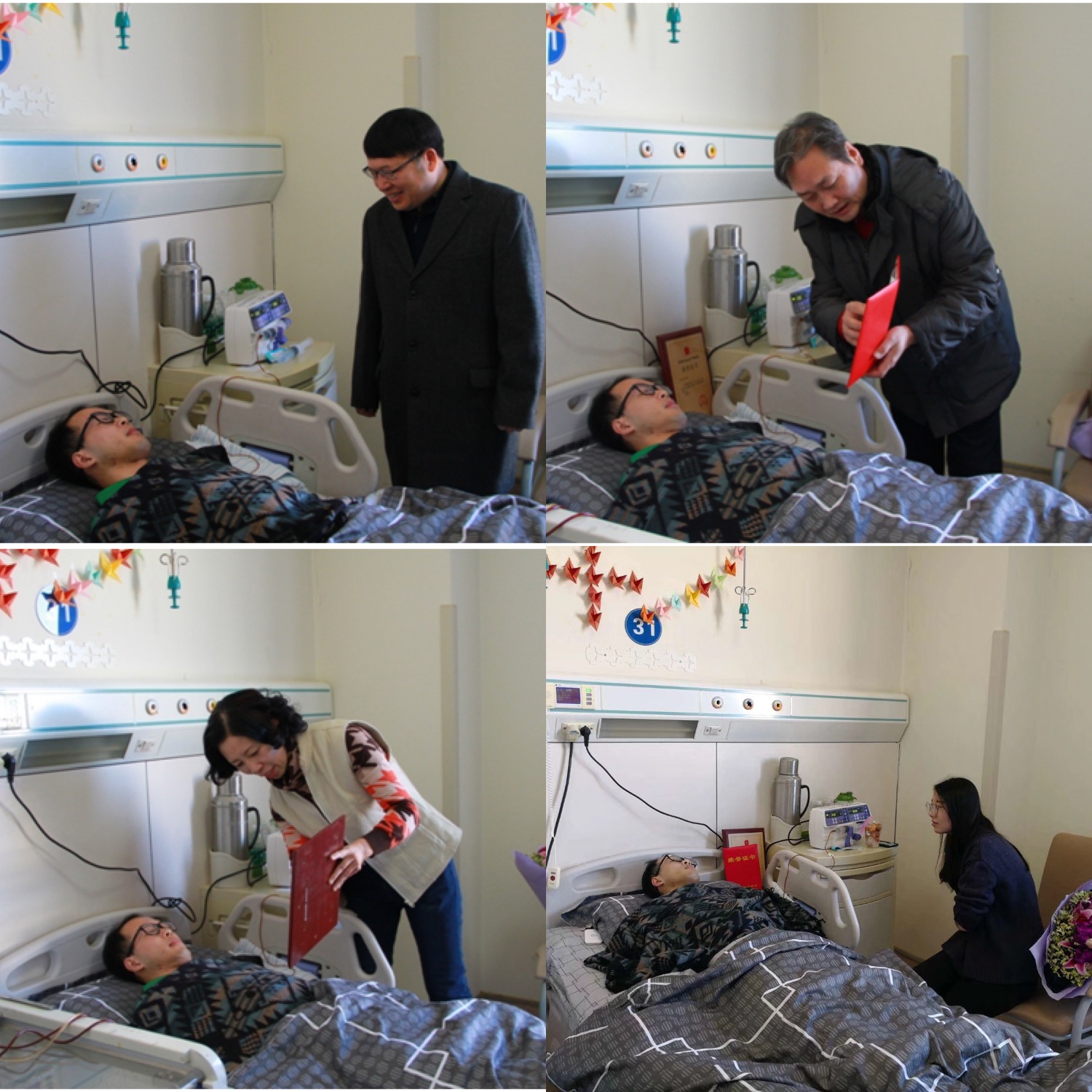 当天上午9时30分,校党委副书记、副校长常保国、学生工作部部长卢少华、校团委赵中名等一行来到医院看望和慰问小林,常保国书记走到小林床前与其亲切交流并转达了胡明书记和黄进校长对小林的问候。