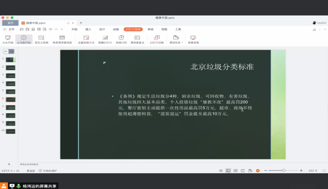 随后,杨鸿运同志以垃圾分类政策为例,介绍了治理有我的重要性和具体举措。垃圾分类在全国范围内逐步推广,每个地方分类标准可能有所不同,杨鸿运同志强调,作为党员,我们应当及时了解相关政策并积极配合,为美丽中国的建设出力,其他与会党员也对垃圾分类的重要性表示认可。党员马智辉更是指出,如果不实施垃圾分类,不仅会造成可再生资源的浪费,还会让有毒垃圾污染环境、破坏土壤,这将制约我国甚至是世界的产业发展,也将会带来更多生命的流失,垃圾分类这一行为看似日常,实则事关生态文明的建设和人类世代生命的延续。